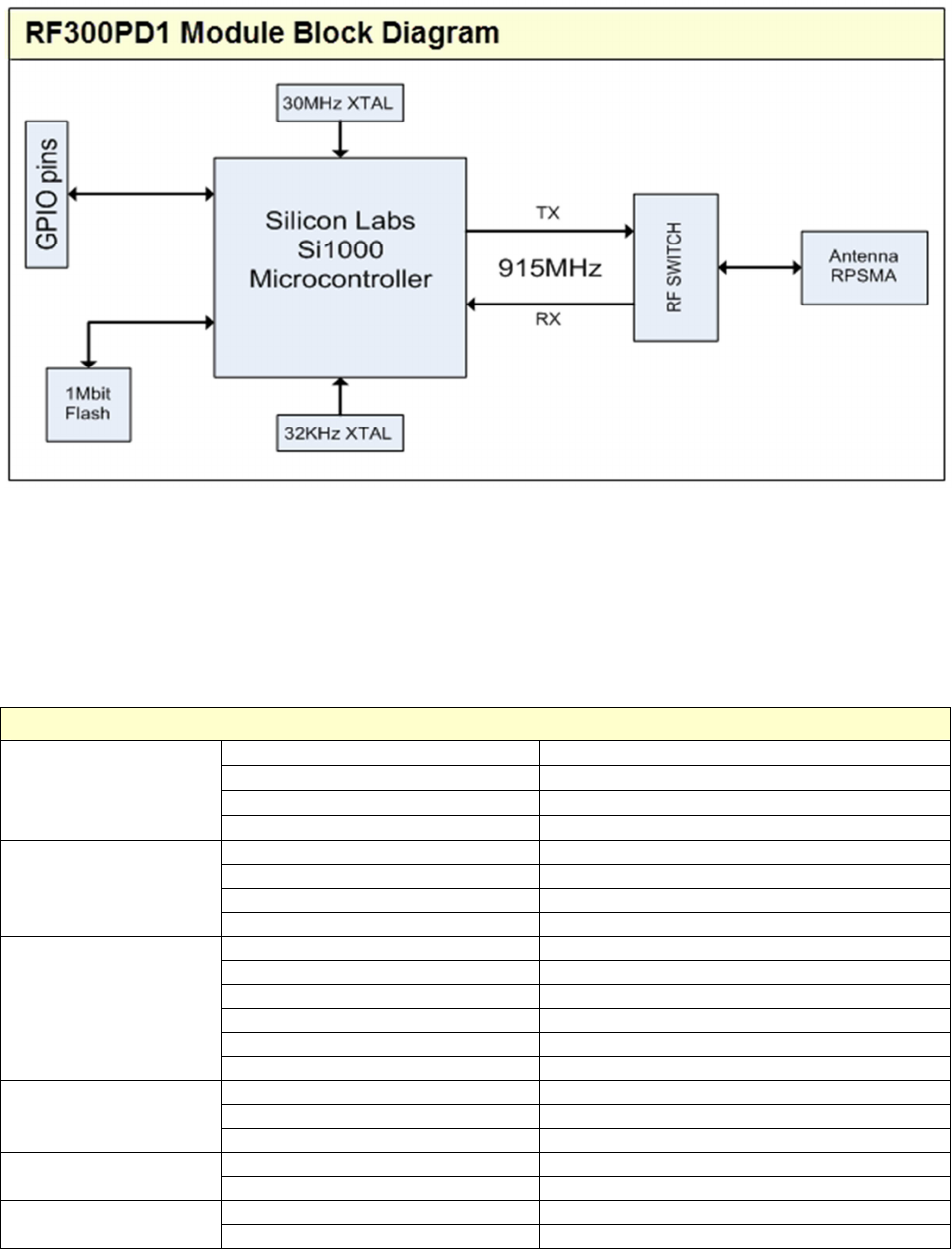 Table 1.0. RF300PD1 Specifications