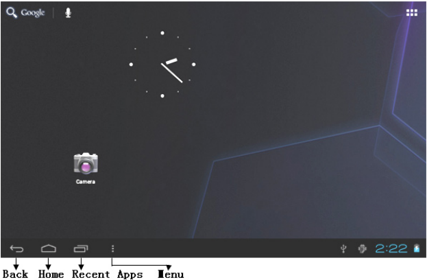 In the desktop interface, press down the Menu key, pop-up menu options,