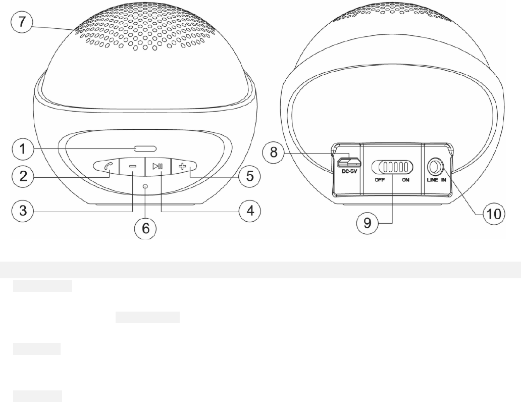 ①: Statusindicatorlamp(Power/Bluetooth/linein)