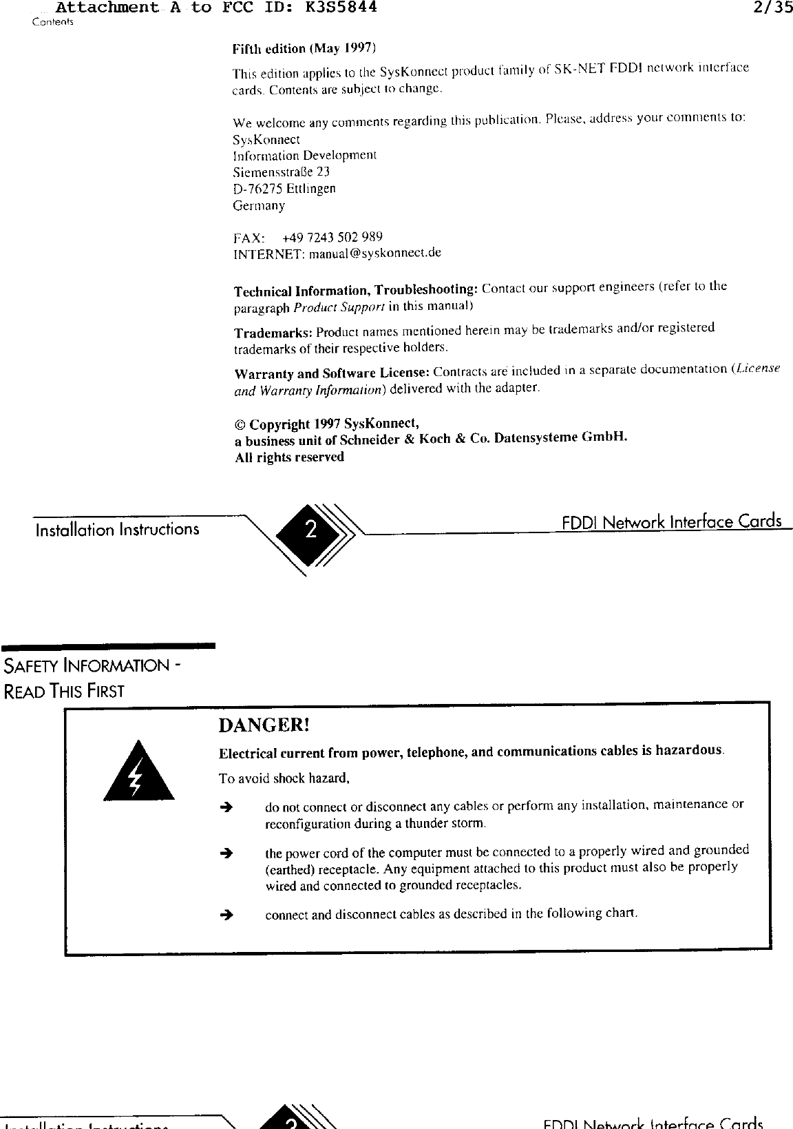 SysKonnect 5844 Network Card w/50 MHz Oscillator User Manual 776