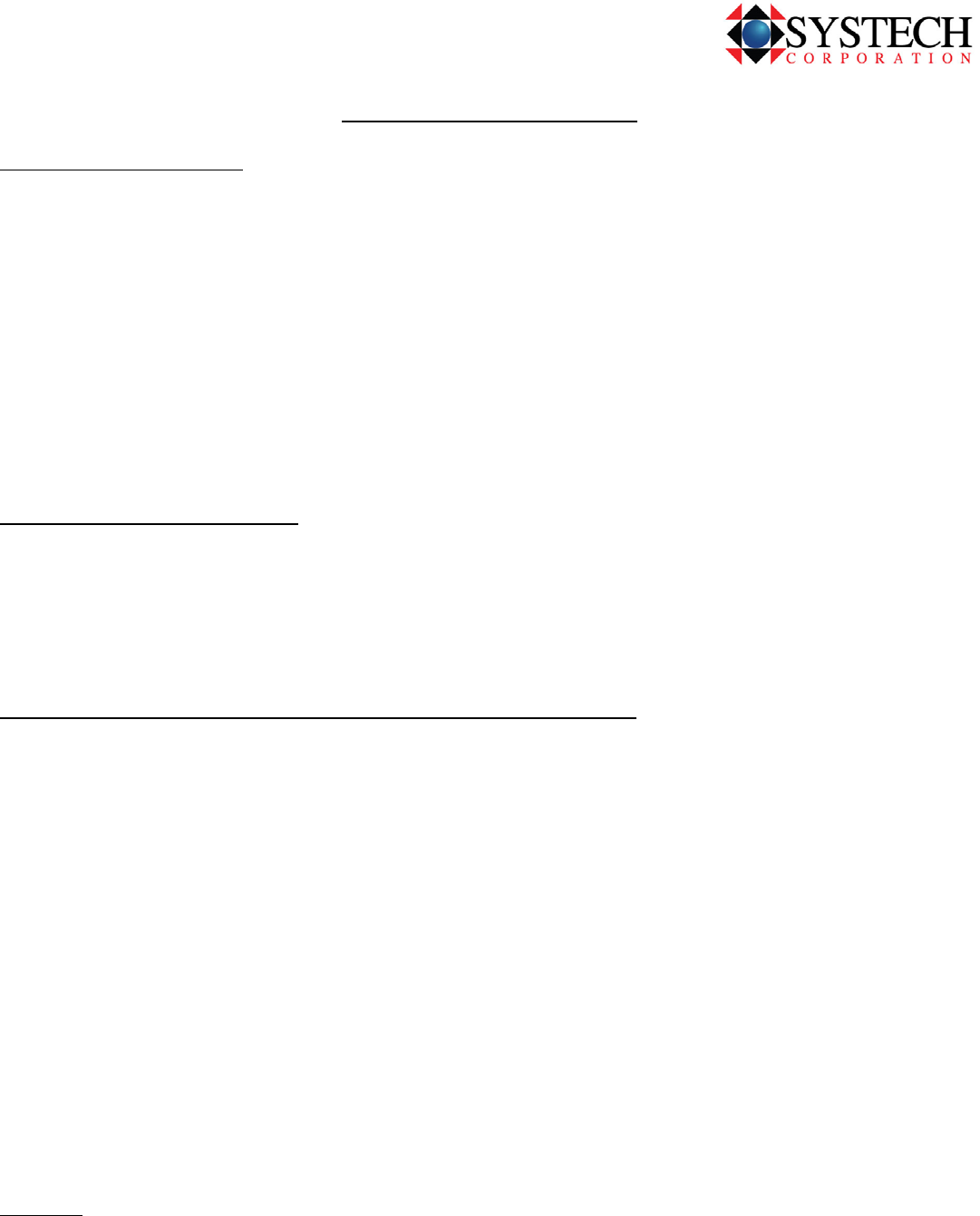 Changes or modifications not expressly approved by Systech Corporation could void the user’s authority to