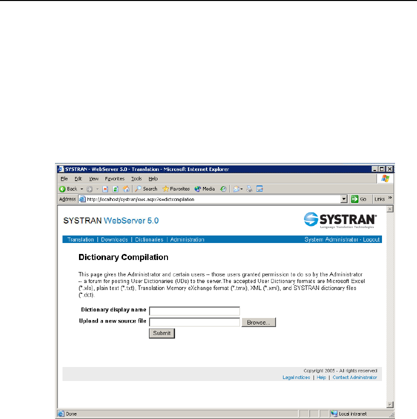 Dictionary Administration page in the SYSTRAN Enterprise Global Server 5.0 Web