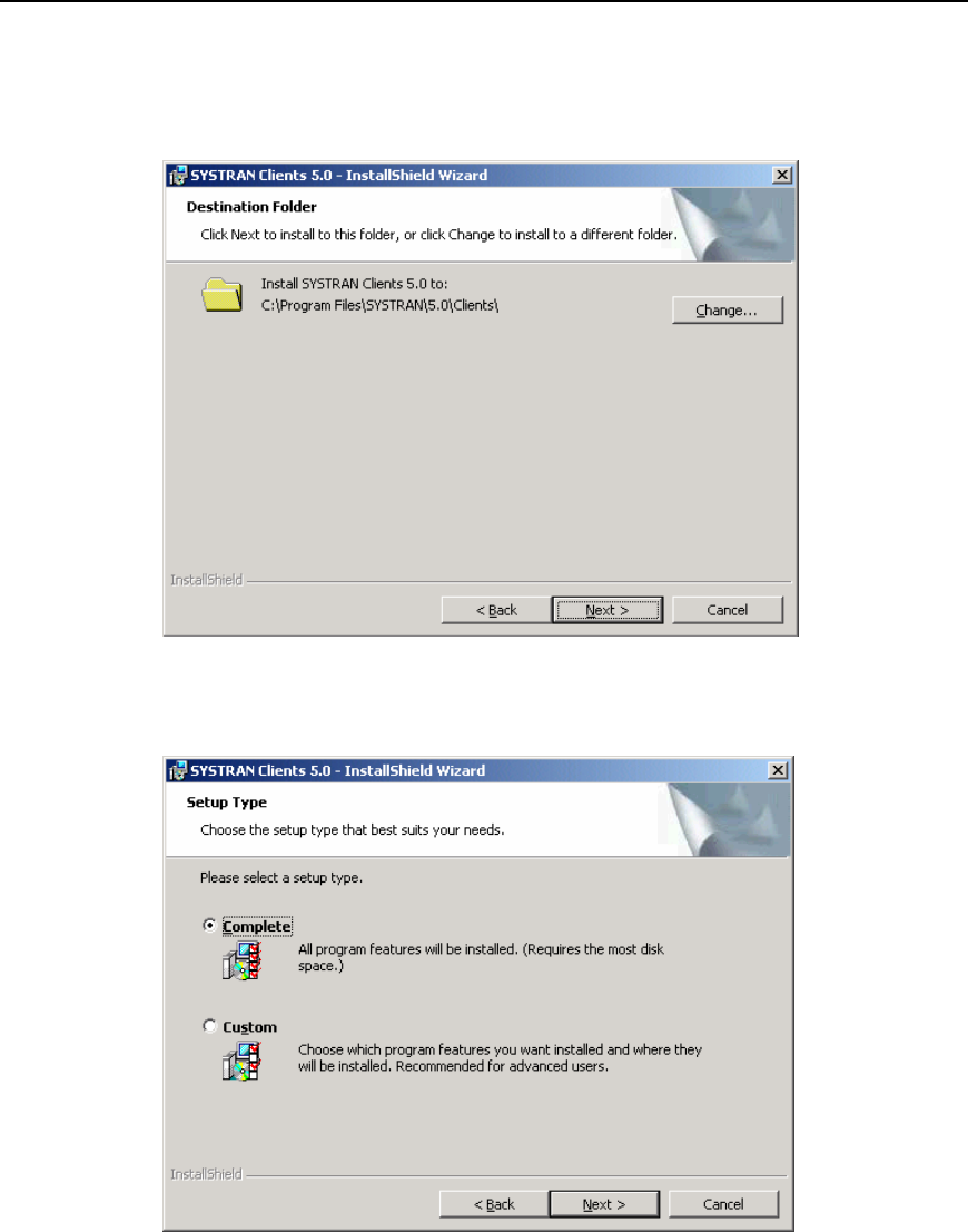 Files\SYSTRAN\5.0\Clients\. To use the default location, click Next. You