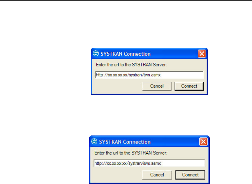 Connecting to a SYSTRAN Enterprise Global Server 5.02 and above