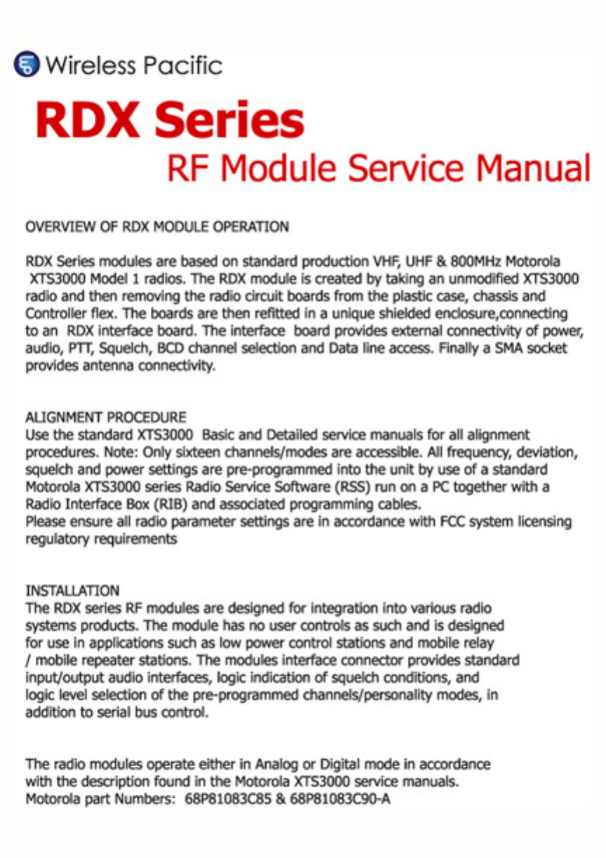 T L Parker RDX-U2 Mobile Transmitter User Manual Service manual