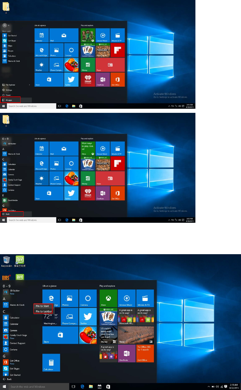 1. Windows 10 start image: On the start screen, you can see many programs fixed in the