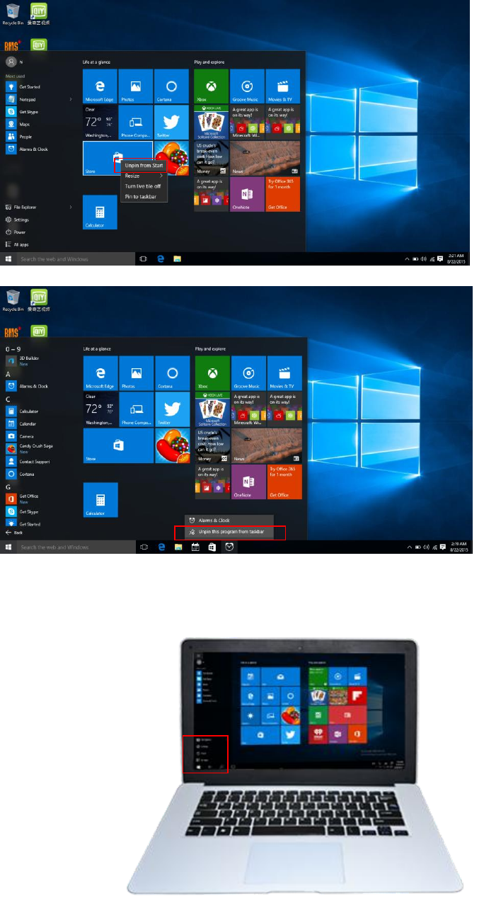 Conversely, if you want to cancel or delete a certain application in the start screen or taskbar,