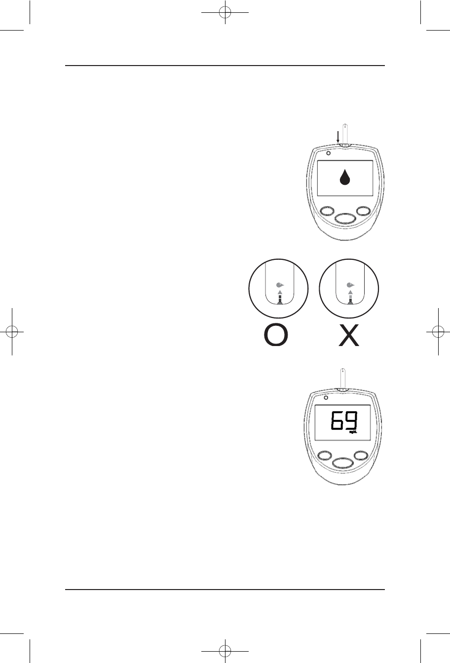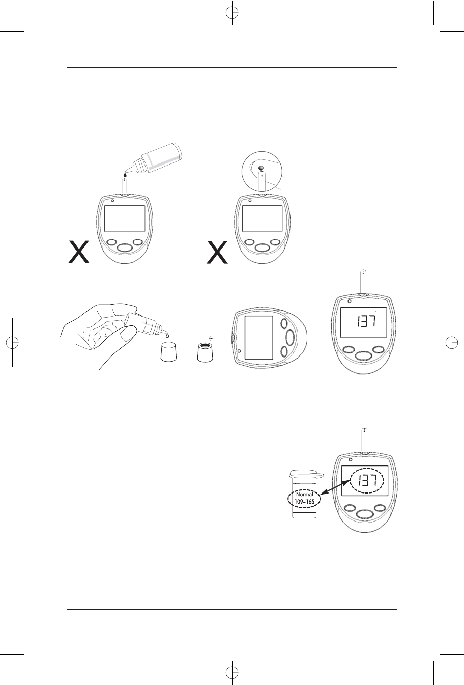 drop of blood to the absorbent hole of test strip until