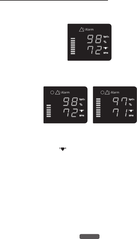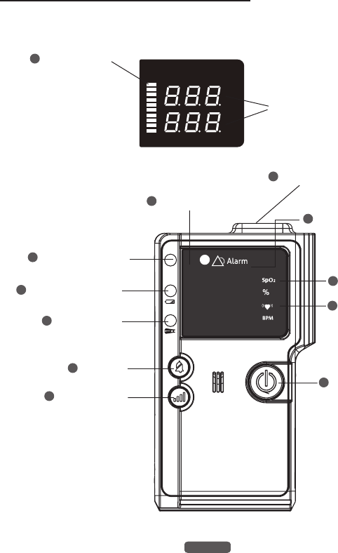 Parameters: SpO2; pulse rate; pulse bar (can also indicate low perfusion)