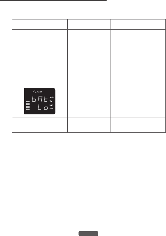 Information Signal Low battery , improper insertion of patient’s nger, or probe fall