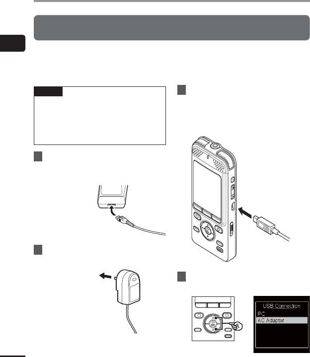 Charging the battery by connecting to an AC adapter with a USB