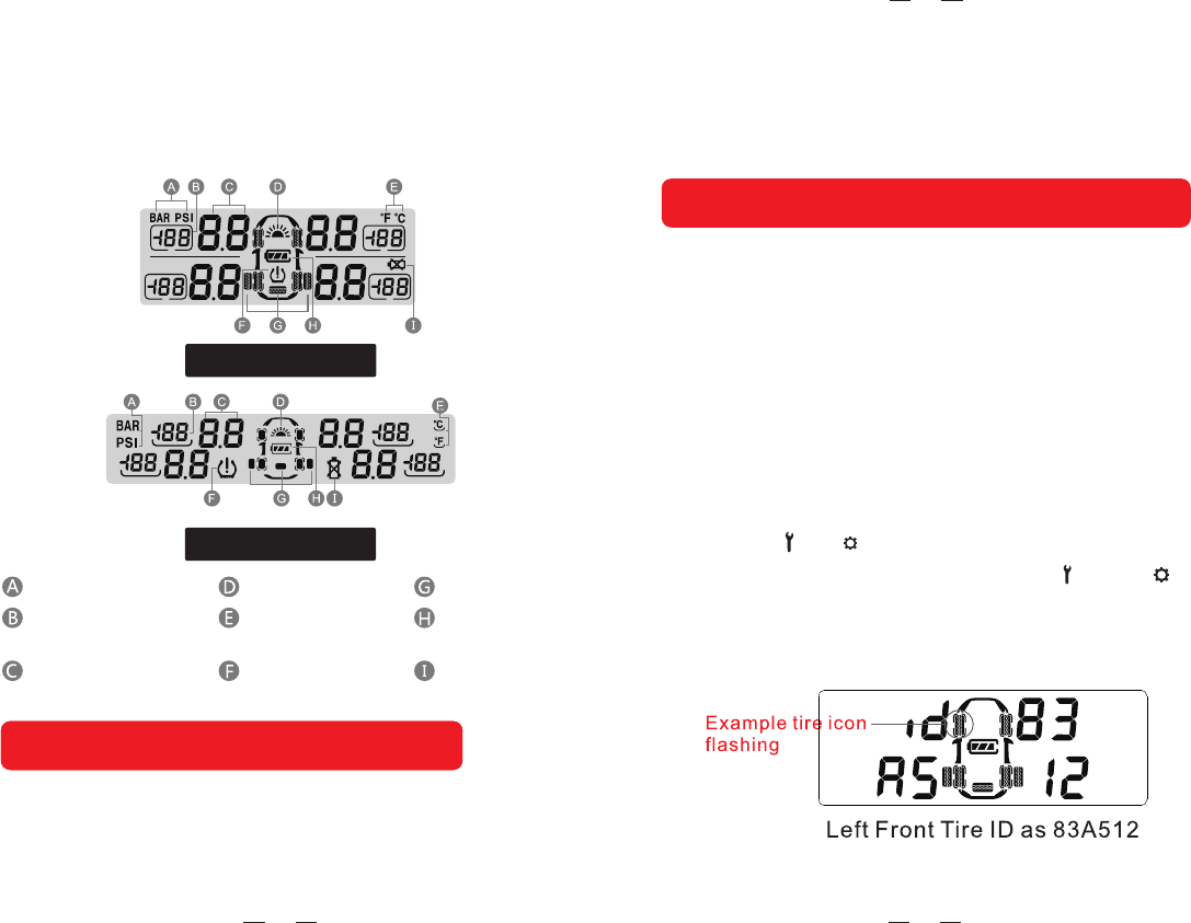 the LCD with “Id”Letter showing the beginning letter of the tire