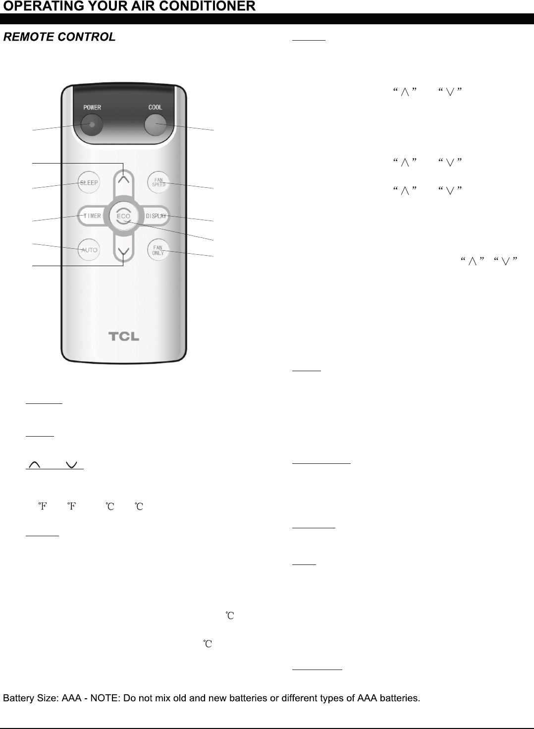 TCL Air conditioner TWAC-TYWFS Windows Type Air-condition User Manual