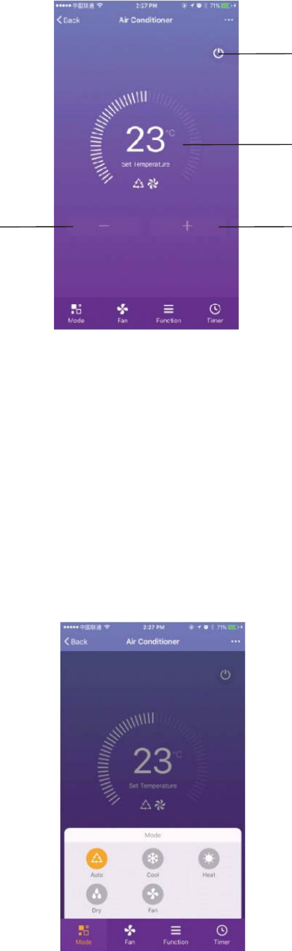 1. Click the air conditioner name to enter the control interface. Turn ON/OFF.