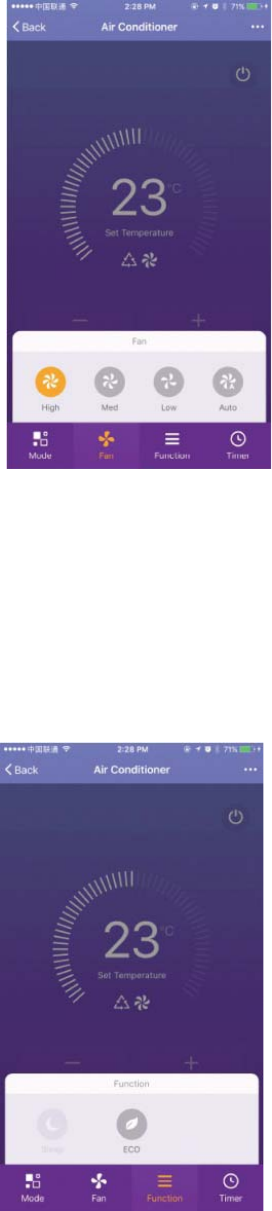 3. Click the “Fan” button, choose different fan speed, Low, Med,
