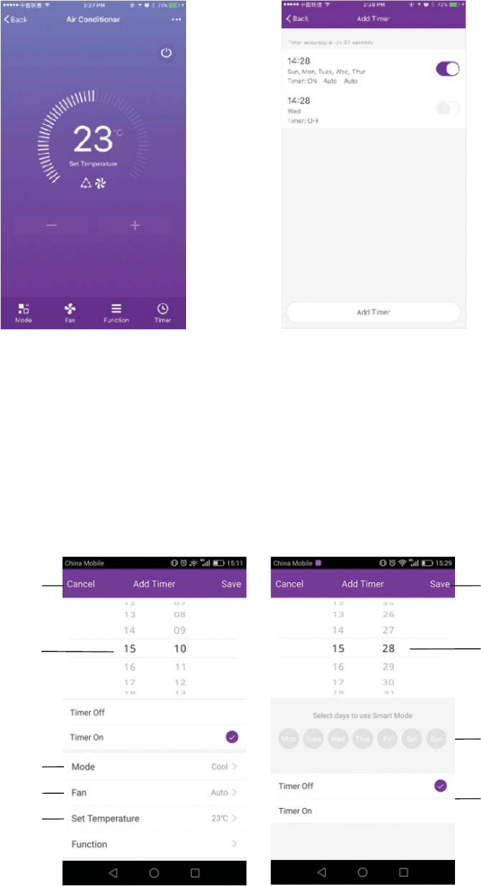 5. Setting Timer function. Click the “Timer” button, the APP will enter to timer