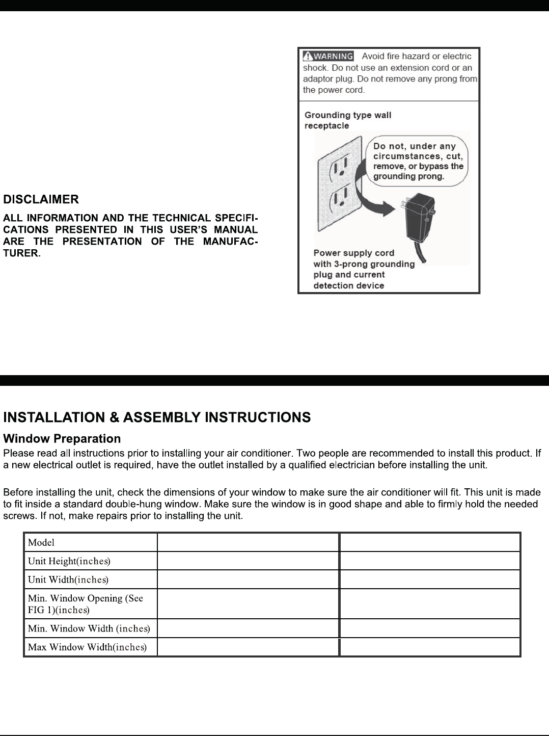 INSTALLATION&ASSEMBLY INSTRUCTIONS ..............................................................