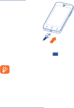 You are advised to fully charge the battery ( ). Connect the battery charger to your phone and