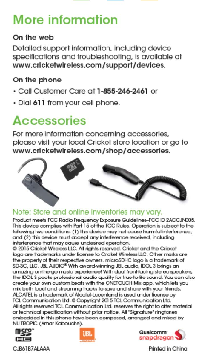 TCL Communication N005 GSM Quad-band / UMTS Quad-band / LTE 4 band mobile phone User Manual