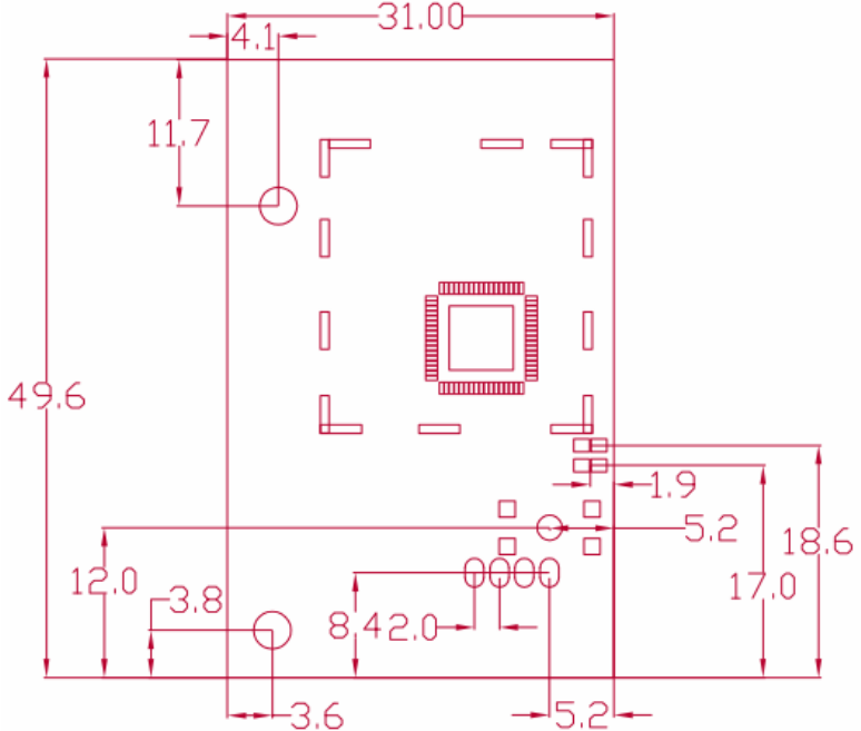 2. The area around the antenna end the module protrudes at least 10mm from the mother board PCB