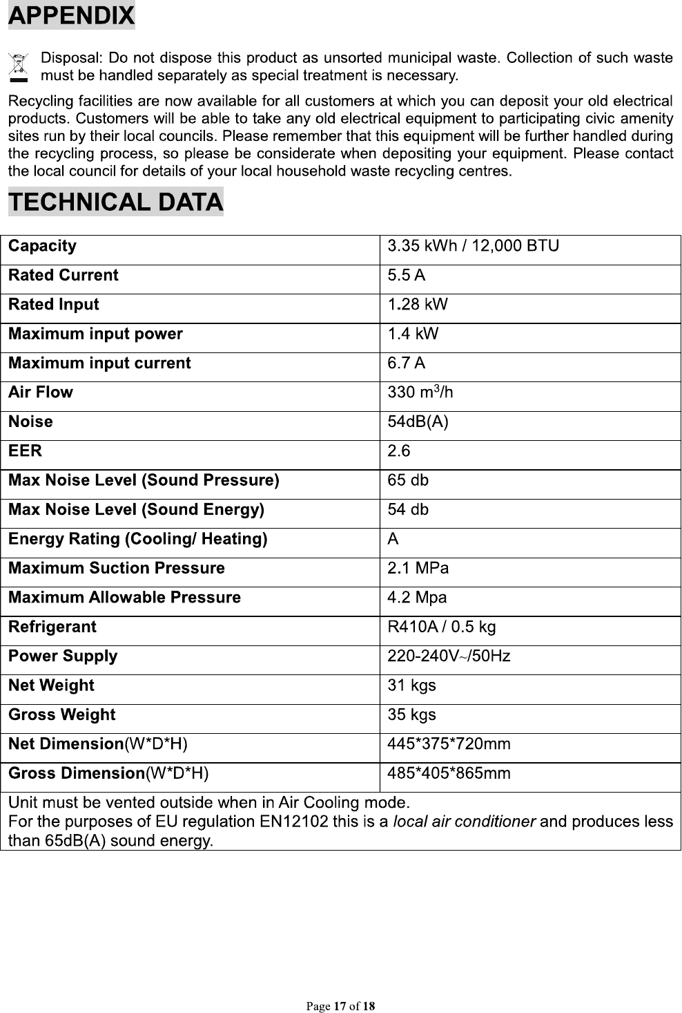 TCL Delonghi Home Appliances TAC3TYJW2-K Portable Air-Condition User Manual