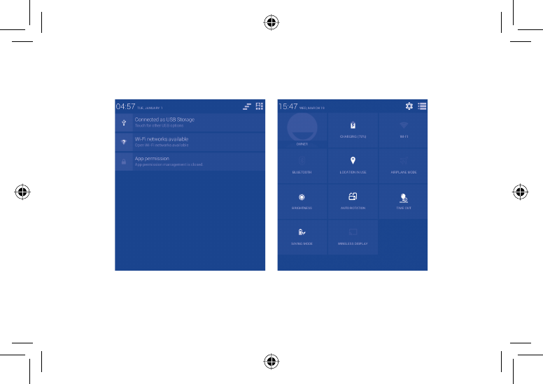 Touch and drag down the Status bar to open the quick setting bar (Picture 2). Touch icons to enable/disable functions or to change