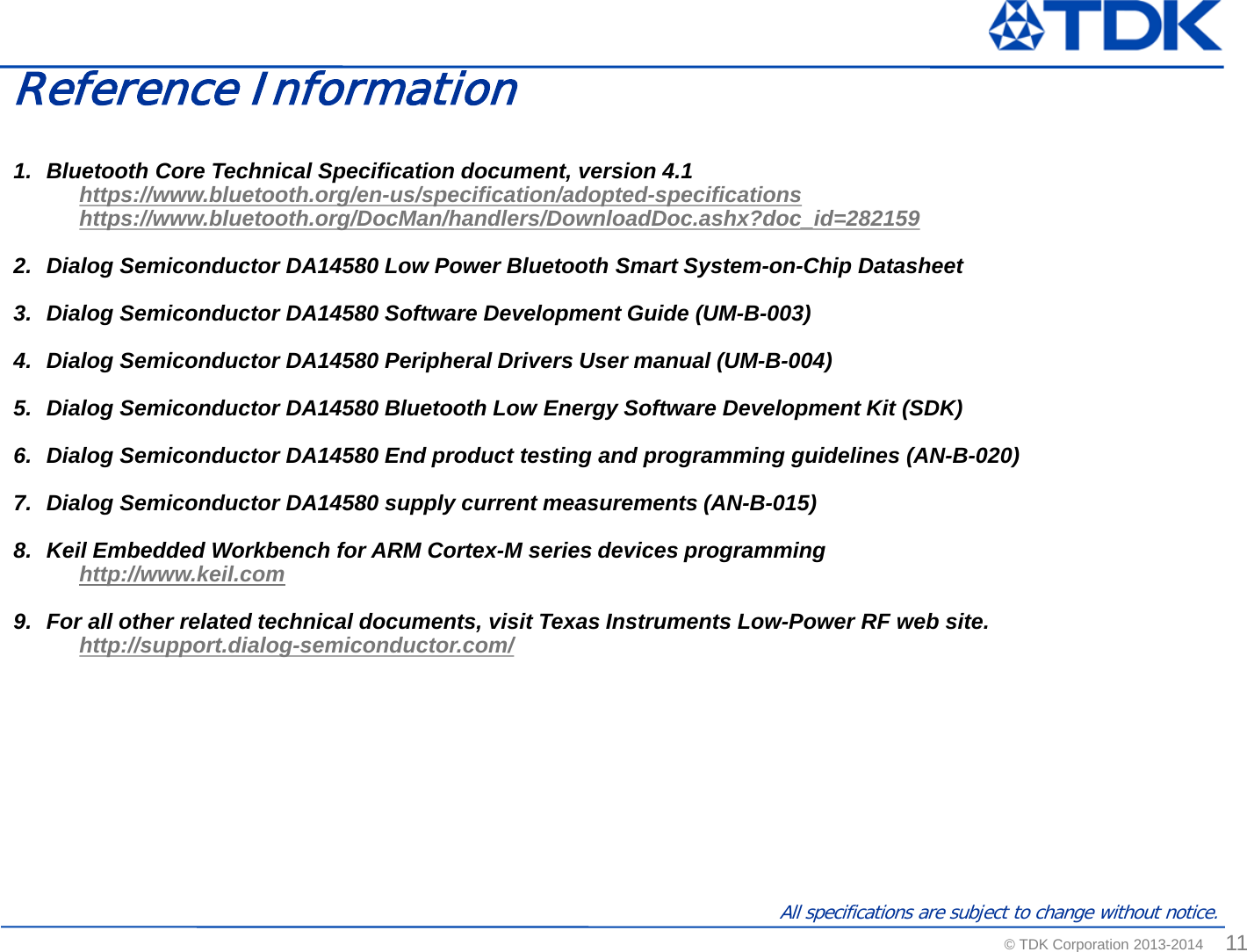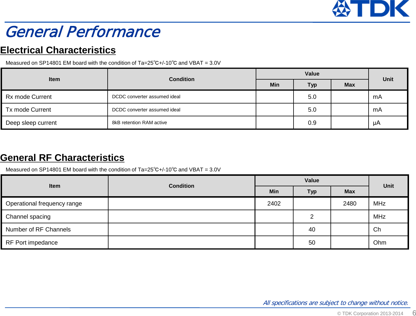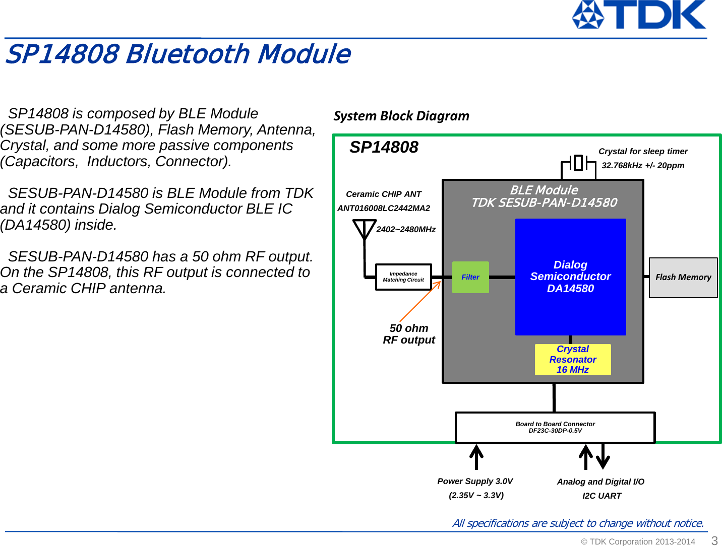 TDK Corporation SESUB BU Bluetooth SMART Transceiver TDK SESUB General Introduction Standard Ver