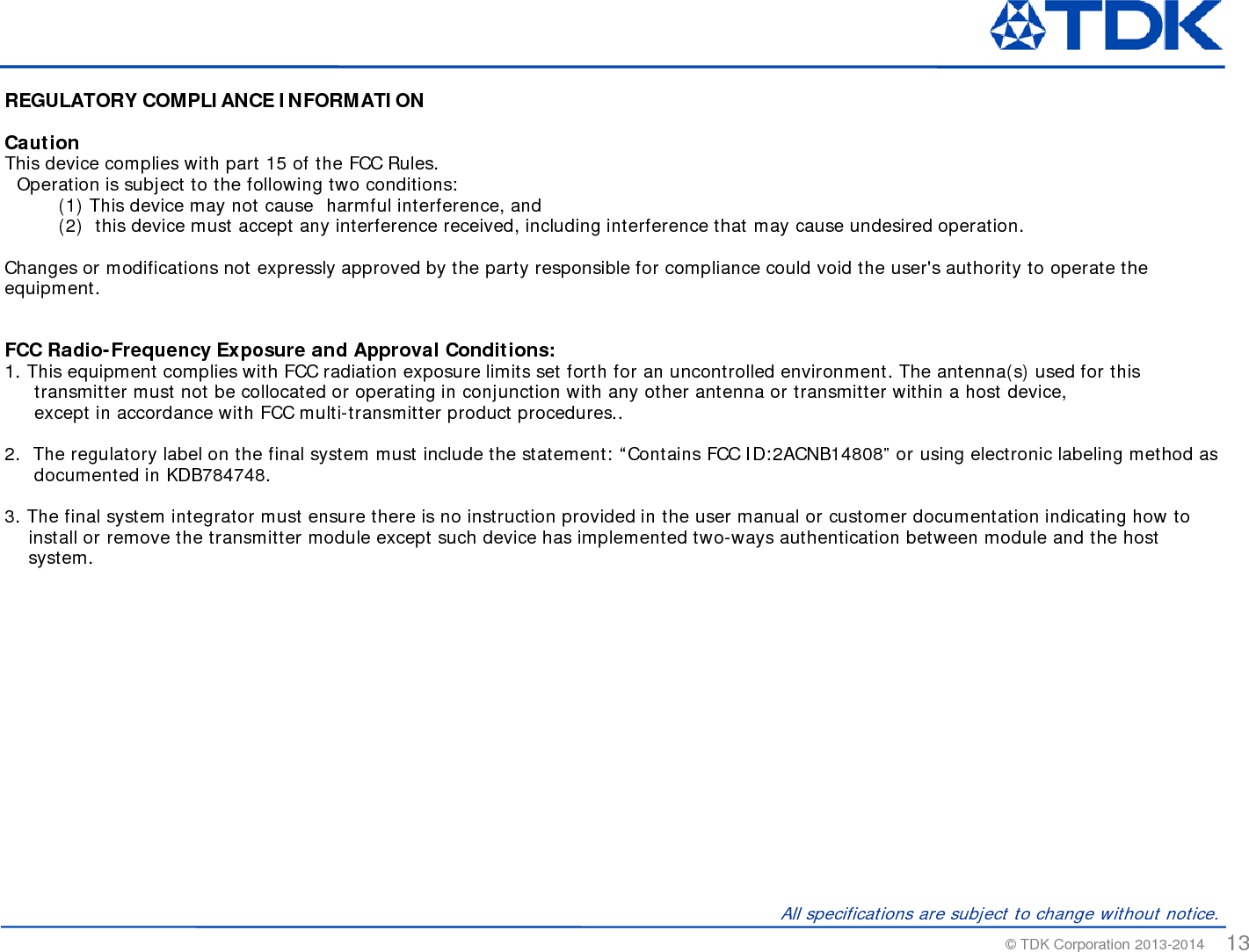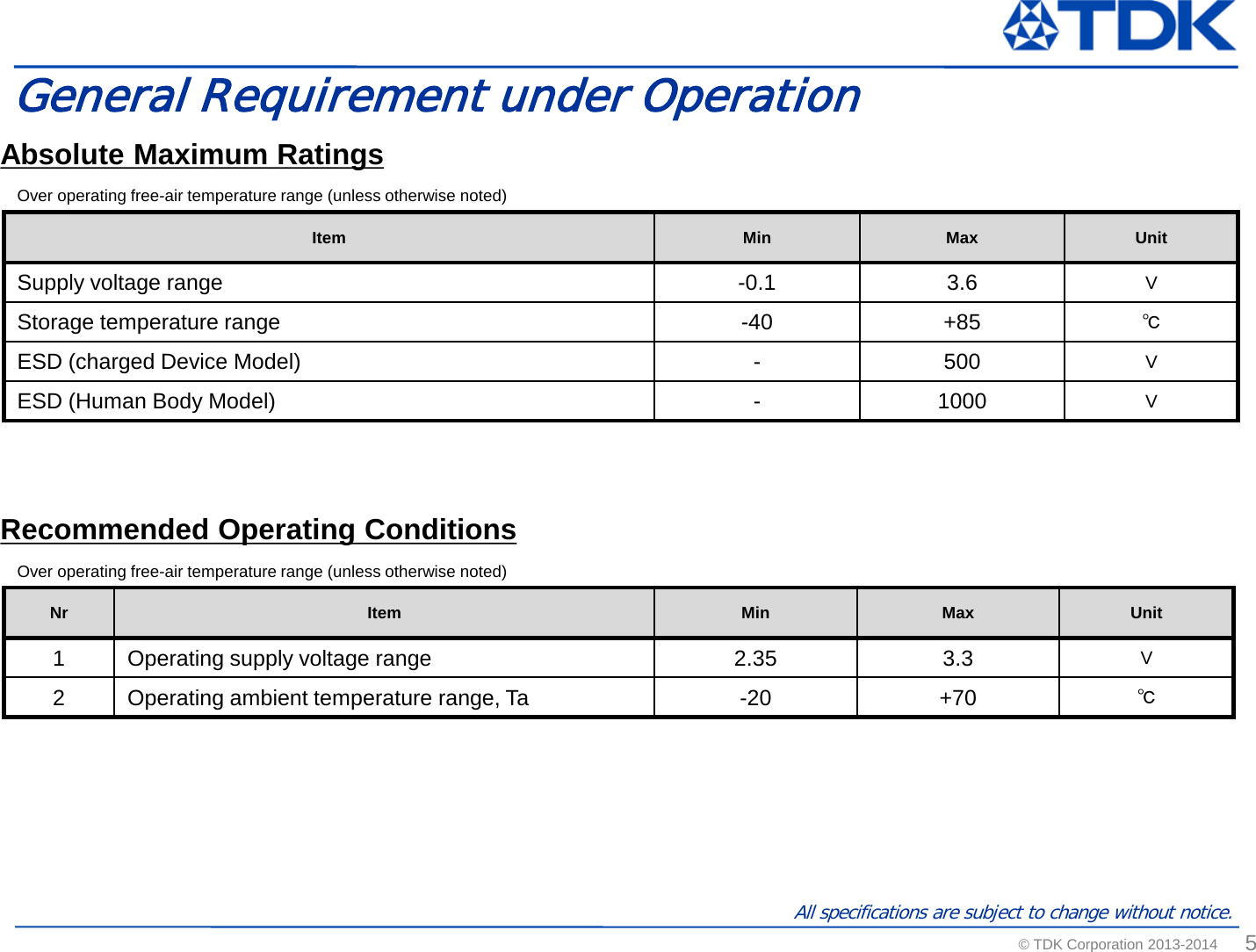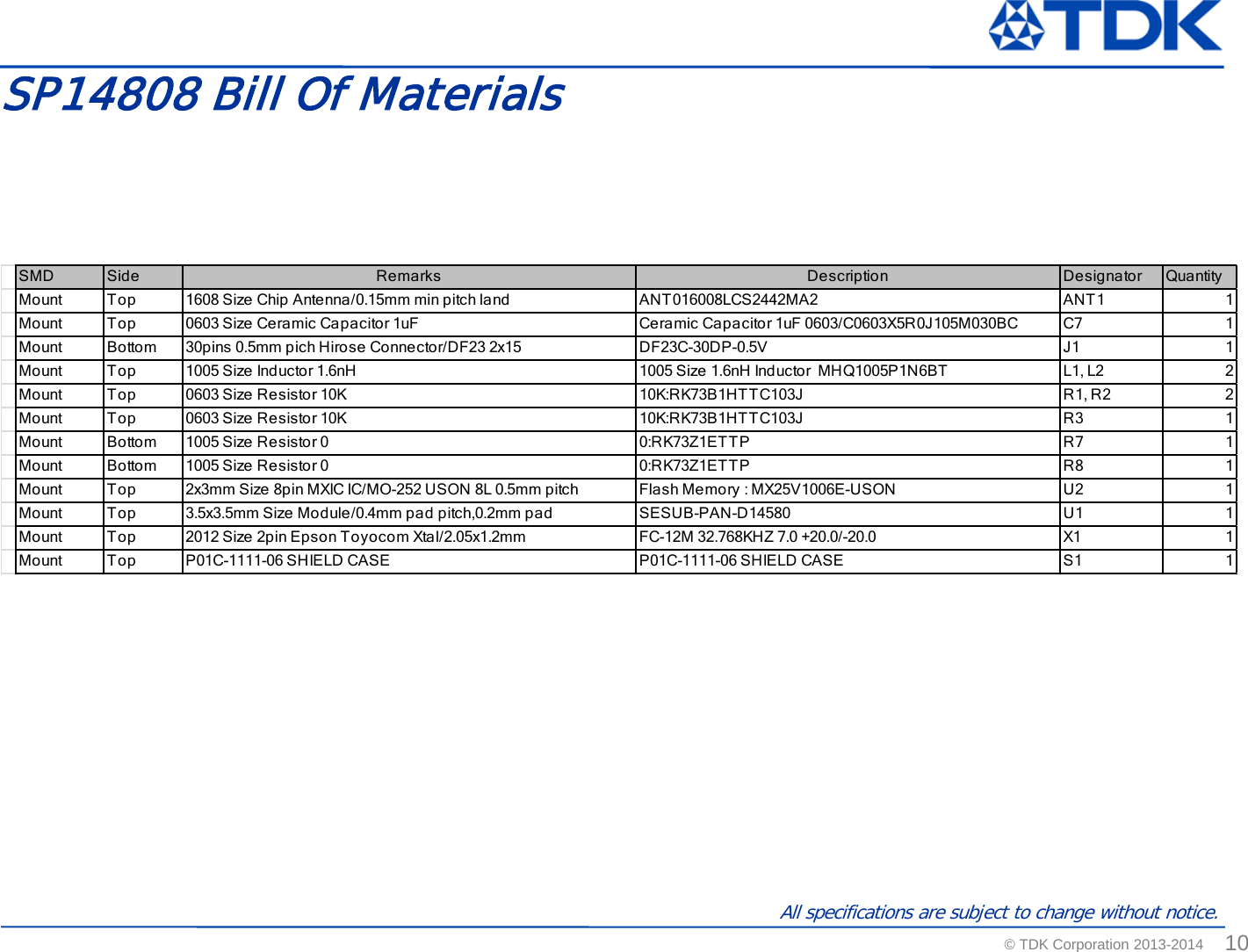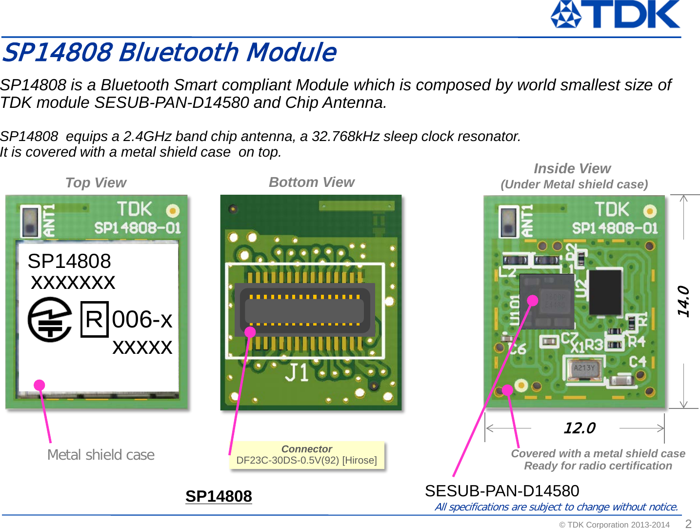 TDK Corporation SESUB BU Bluetooth SMART Transceiver TDK SESUB General Introduction Standard Ver