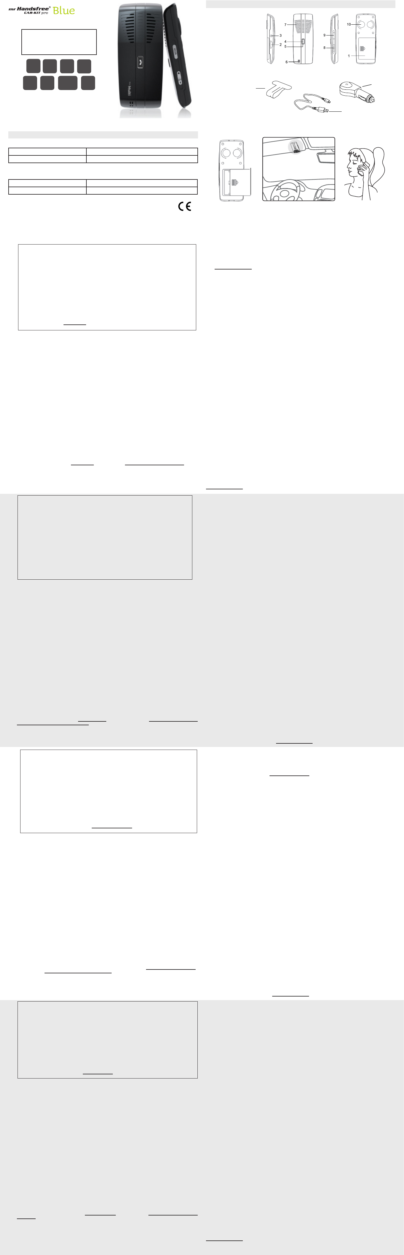 - Transférer l’appel du Blue Easy au téléphone mobile: Appuyez 1 fois sur la touche On/Off (3) en cours de