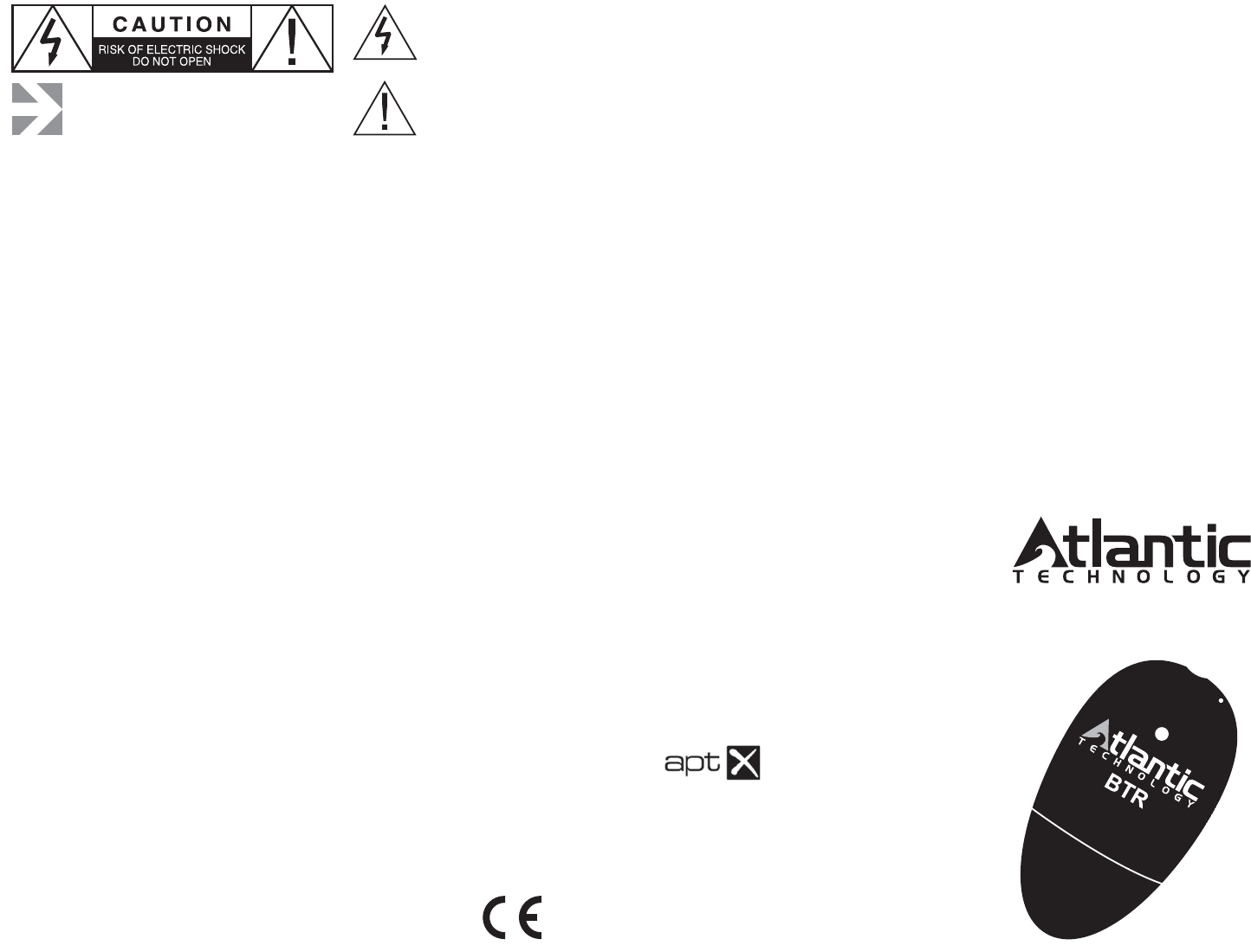 Congratulations on the purchase of the Atlantic Technology BTR Bluetooth Receiver with AptX®. Aer con-