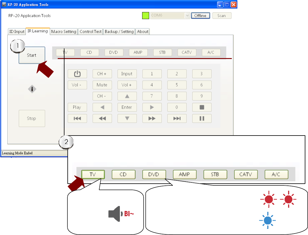In IR learning, RP-20 is recommended to open the buzzer can help confirm the operation action