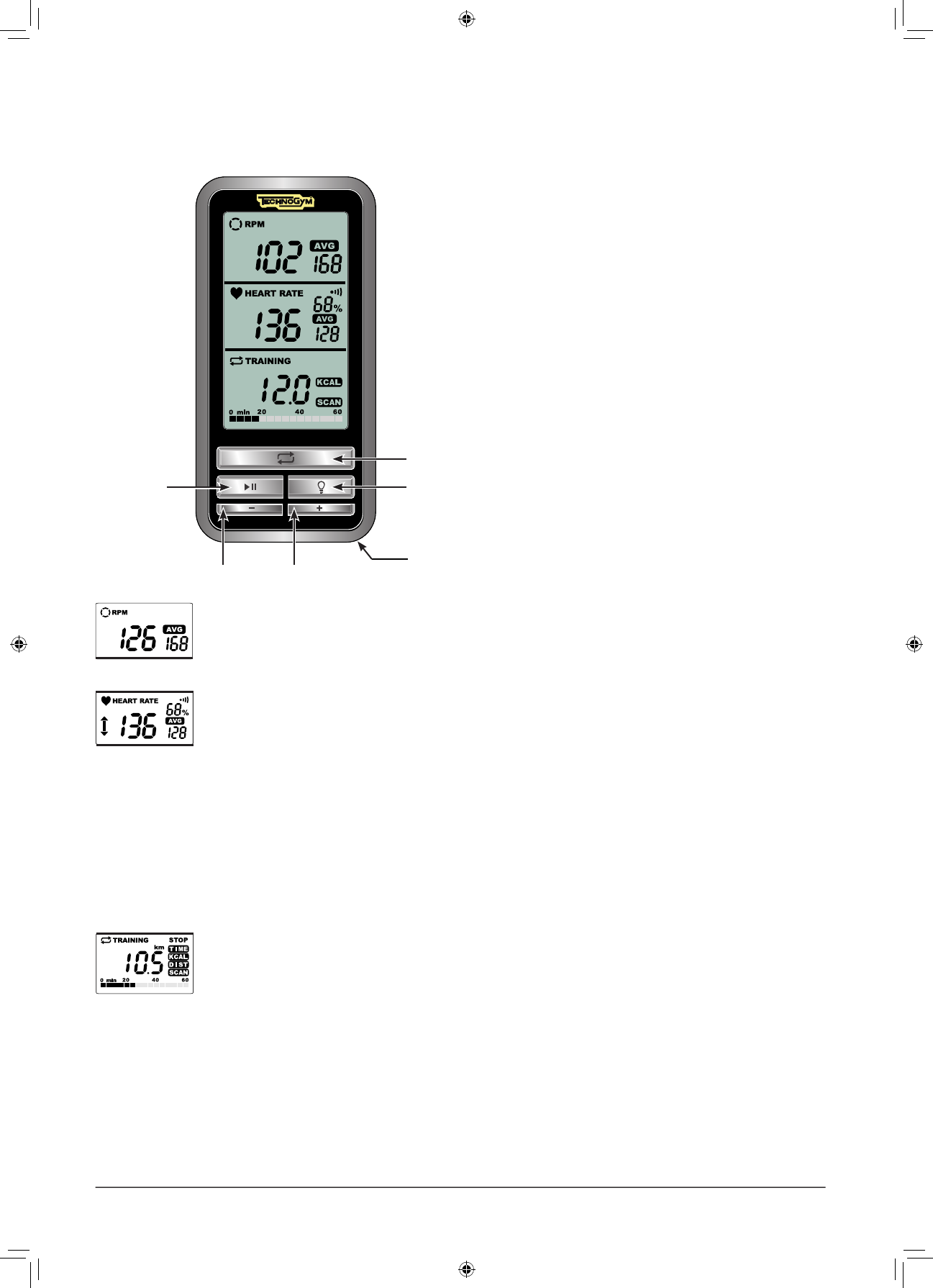 basınız. Eğer SCAN (göz gezdir) opsiyonu seçilir ise, süre değerleri, kilokaloriler ve mesafe her 3 saniyede bir değişir.