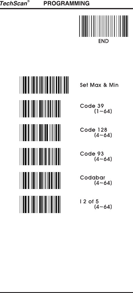 Scan "Program" "Set Max & Min" "Code39(1~64)" "Max"