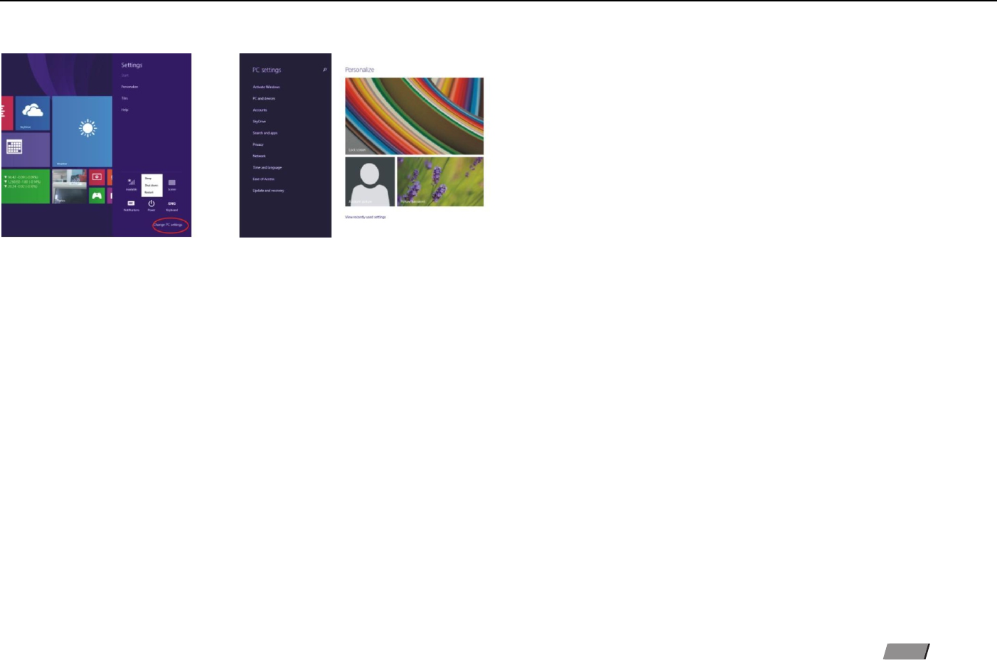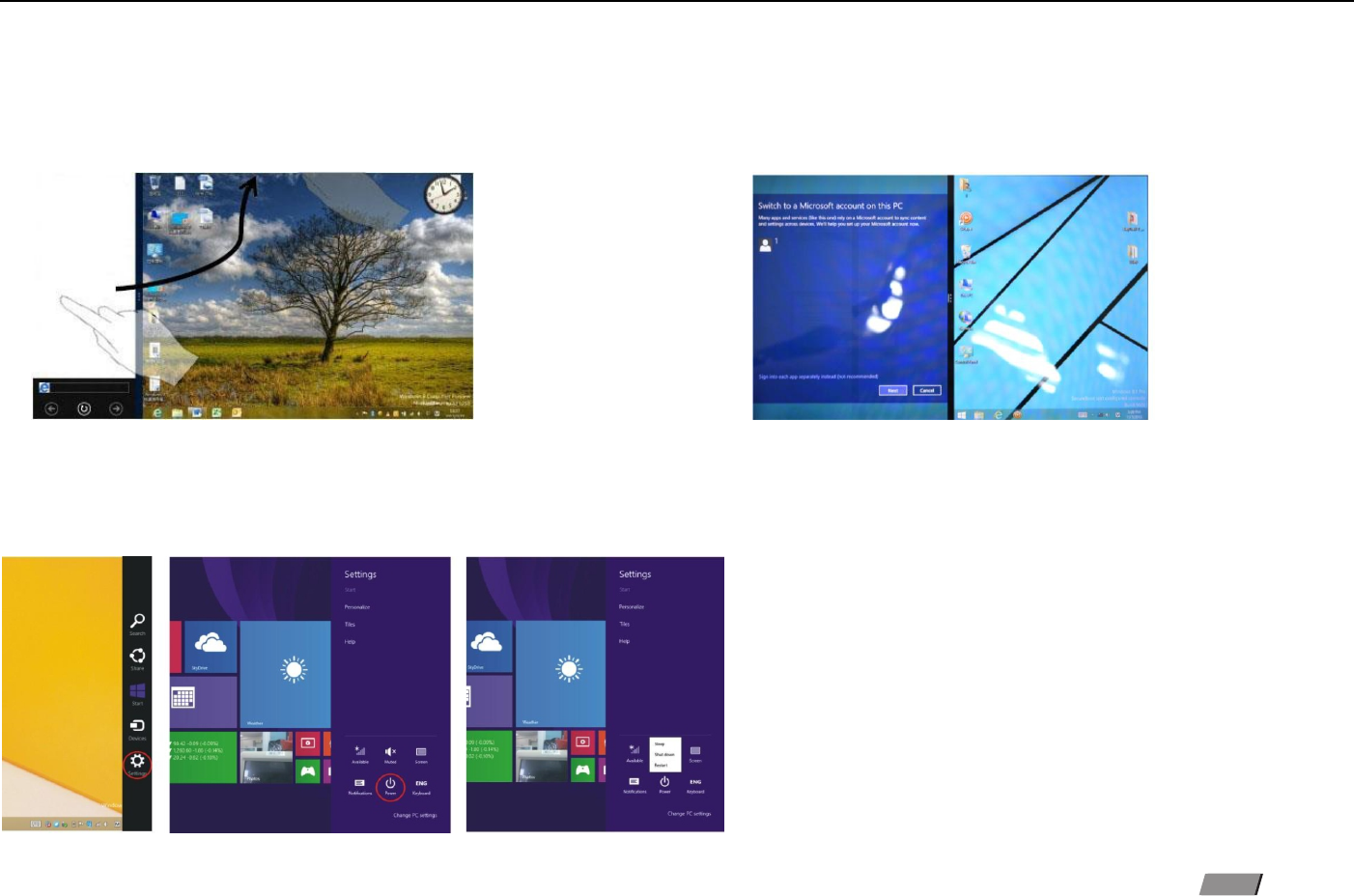 Slide to left :Slide to the left from the right side of the screen to start Charm menu column.