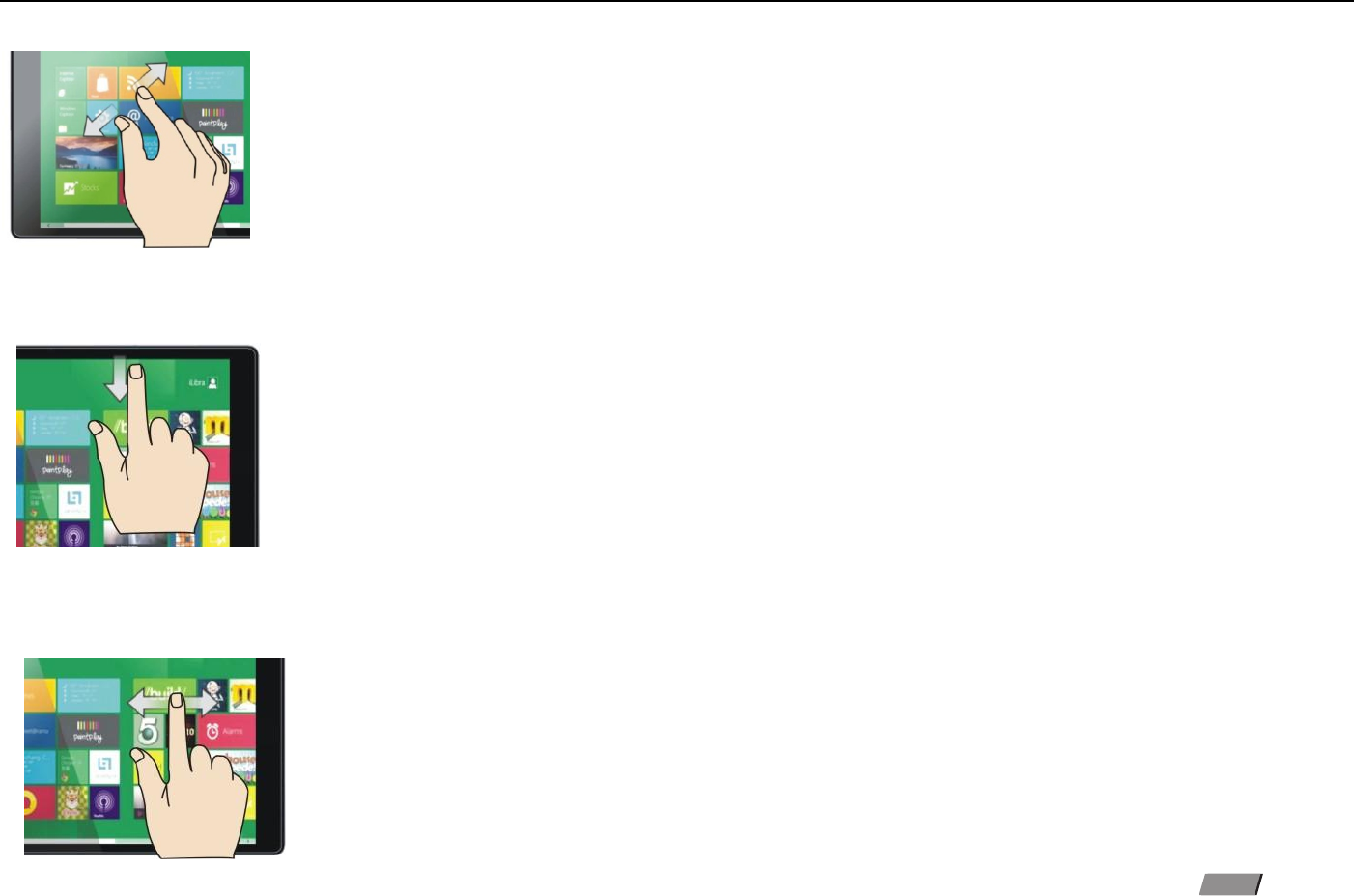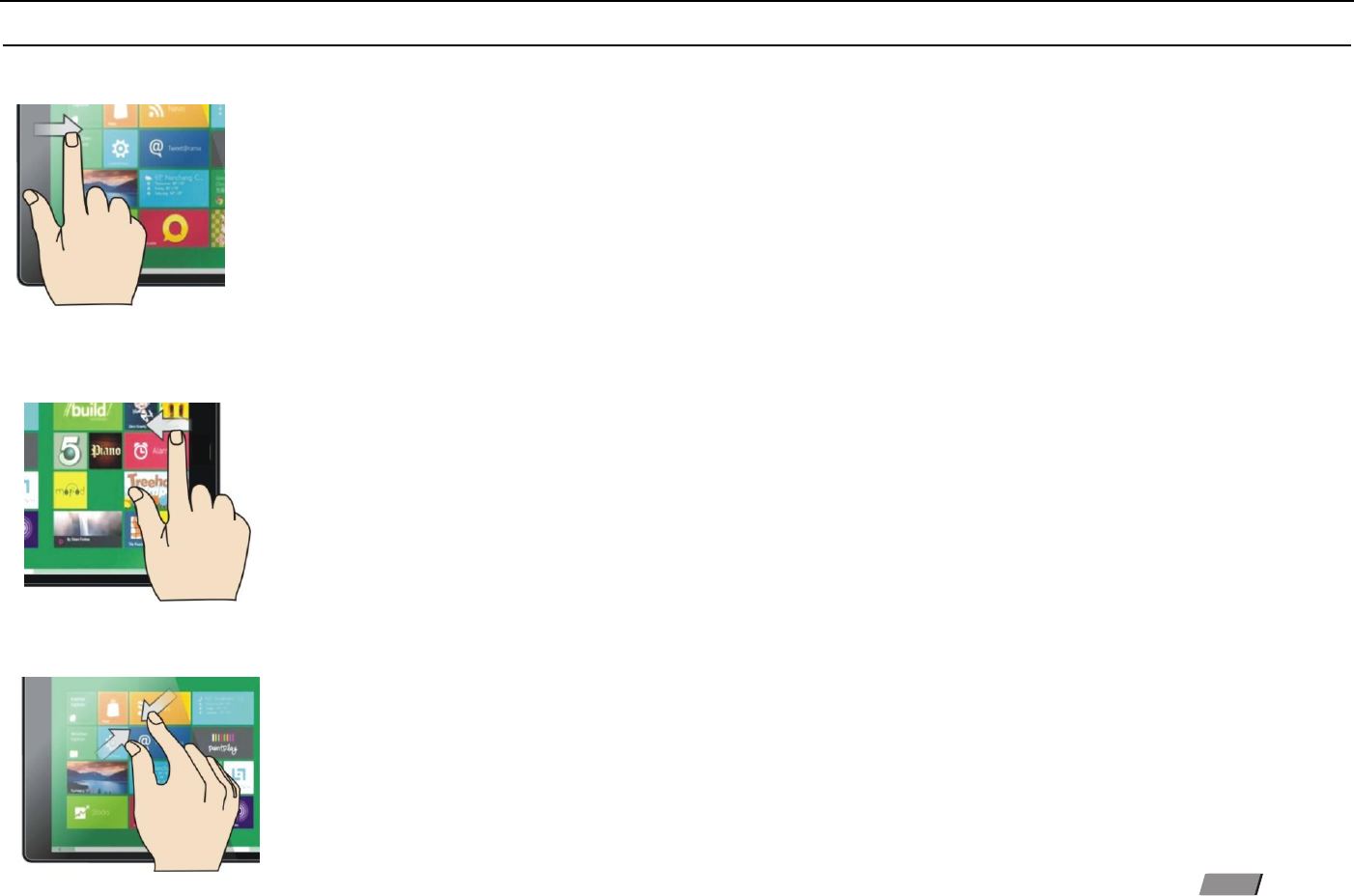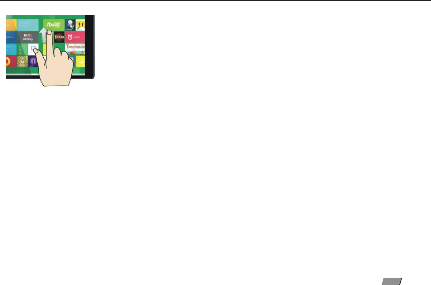 Slide to right :Slide to the right from the left side of the screen to start the application program in running
