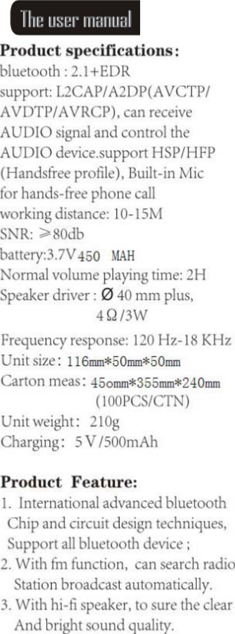 TELEPHONE EST (HK) CO., LTD Bluetooth Speaker Manual