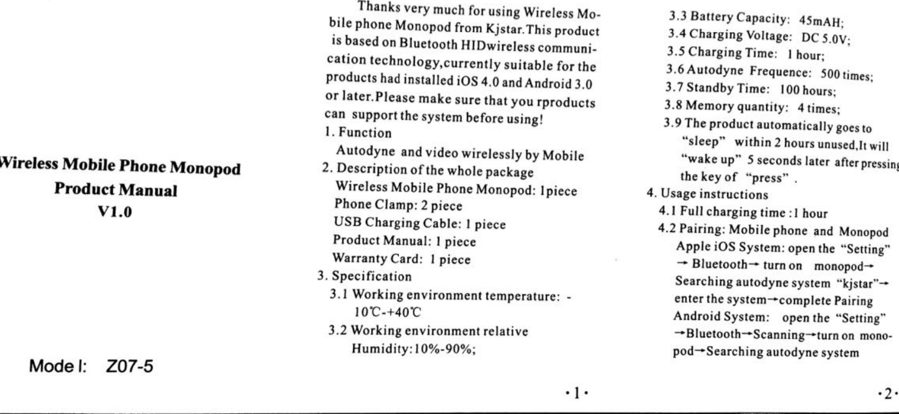 TELEPHONE EST Z07-5 Bluetooth Selfie Stick User Manual C8ABD2B3B4ABD5E6CDBCC6AC