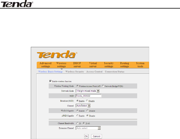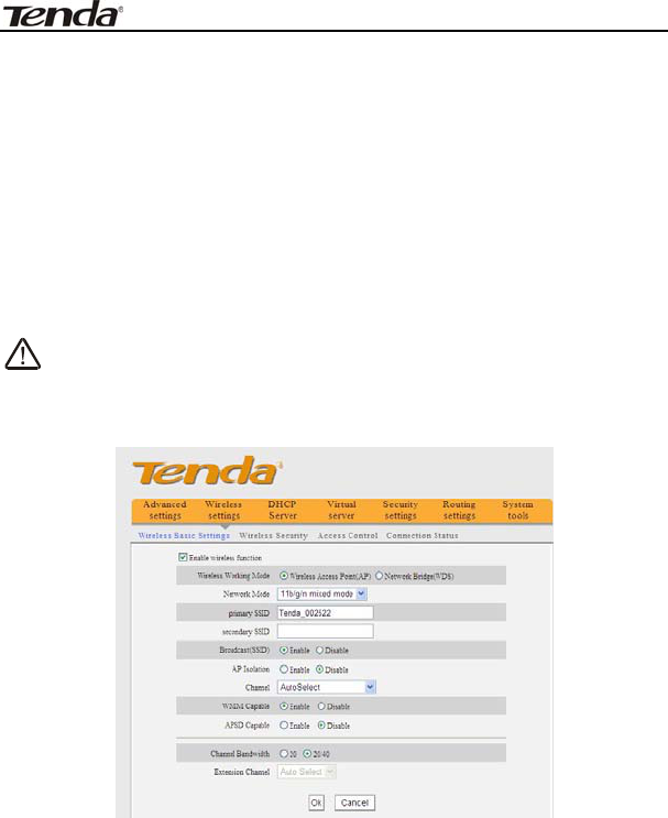 The Tenda wireless router,including router, wireless AP, four-port switch and firewall in