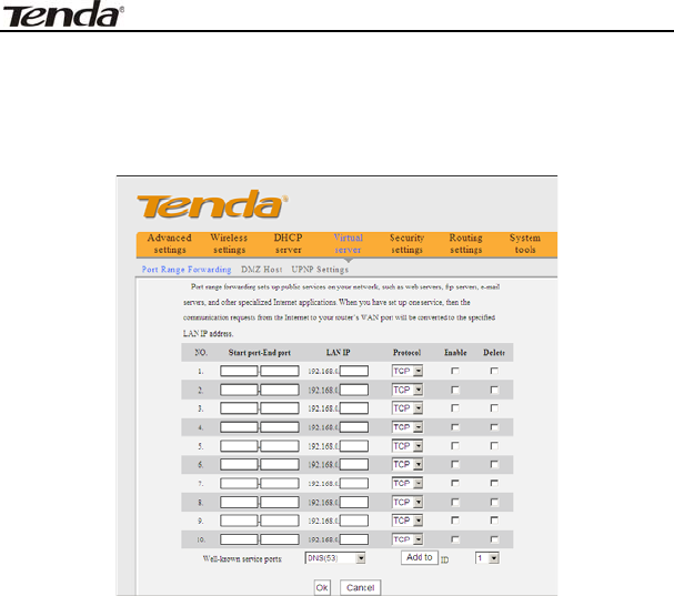 Step 2: In the router’s web click “Virtual Server” and select “Port Range Forwarding”.