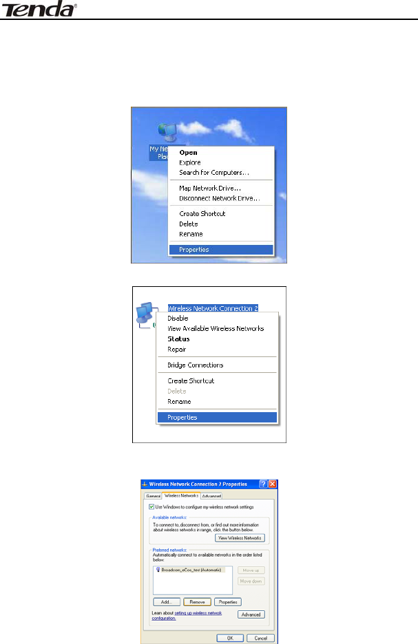 2. Right click “Wireless Network Connections” and select “Properties”.