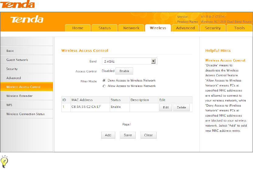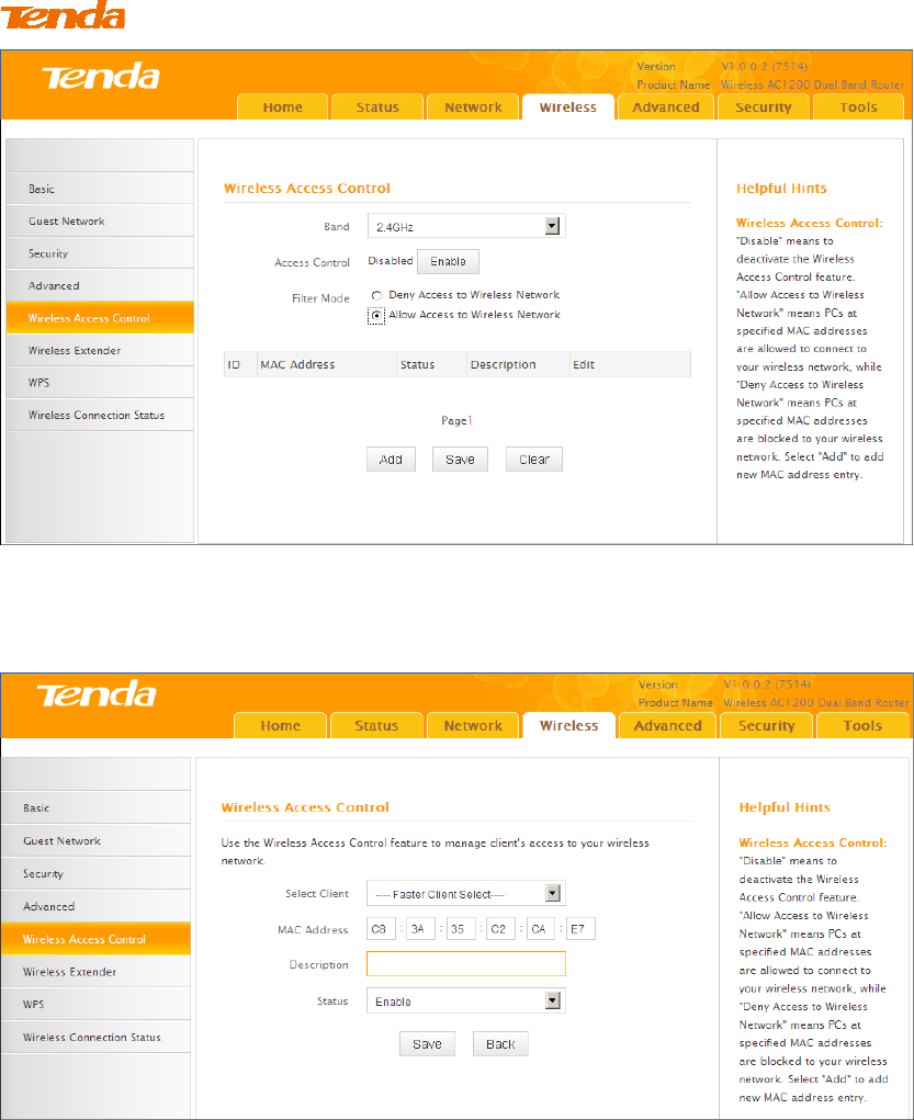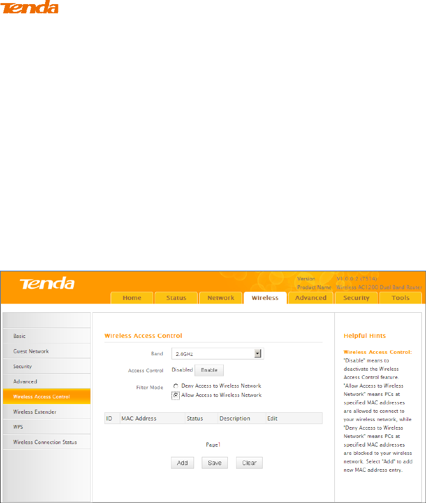 network via the devices’ MAC Addresses. Click Wireless -> Wireless Access