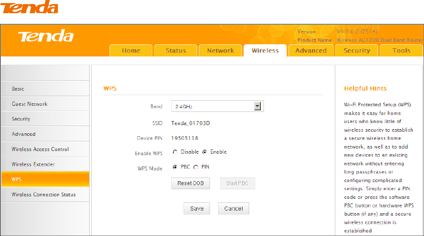 Click Wireless -> WPS to enter WPS screen. Wi-Fi Protected Setup makes it easy