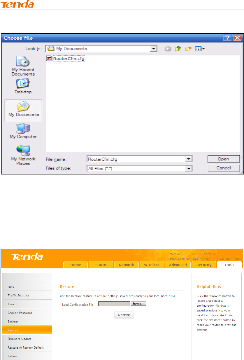 The default configuration file name is "RouterCfm.cfg". Do include the file name