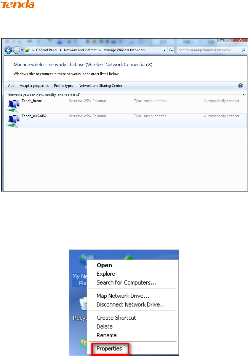 ① Right-click My Network Places and select Properties.