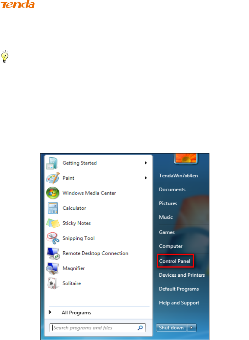 ① Click Start -> Control Panel.