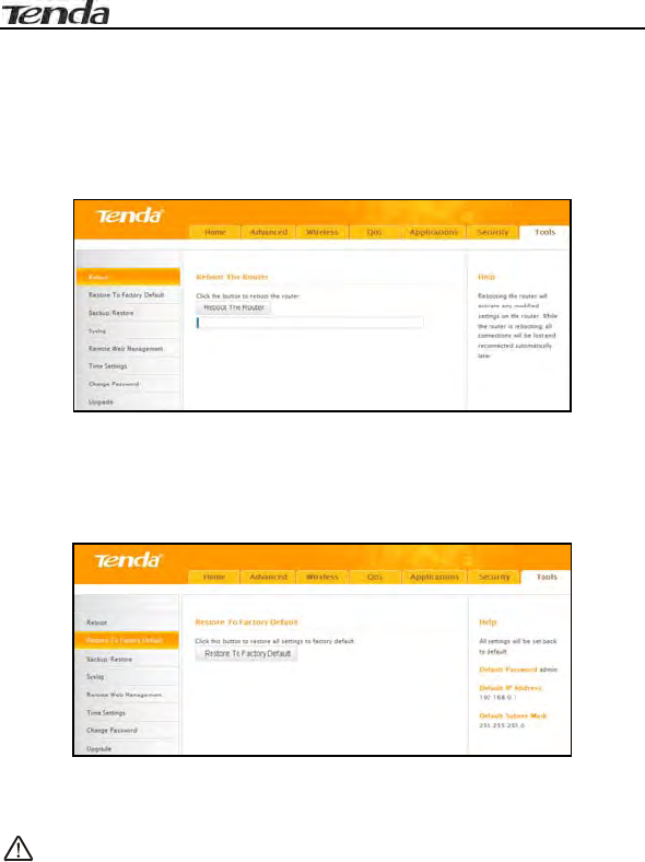 6.2 Restore to Factory Default Settings....................................................................................................58