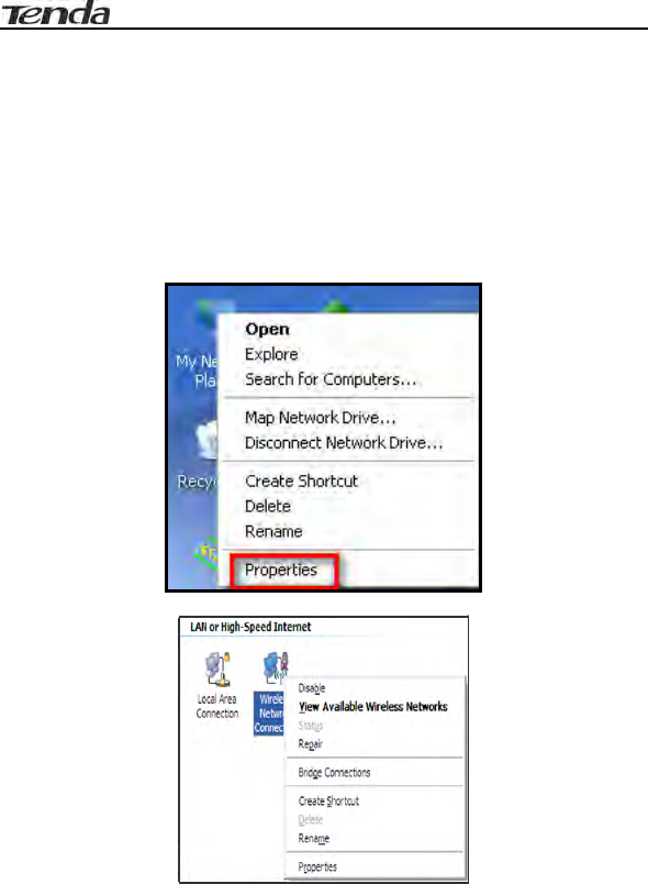 2.Click “Wireless Network Connection” and then select “Properties”.