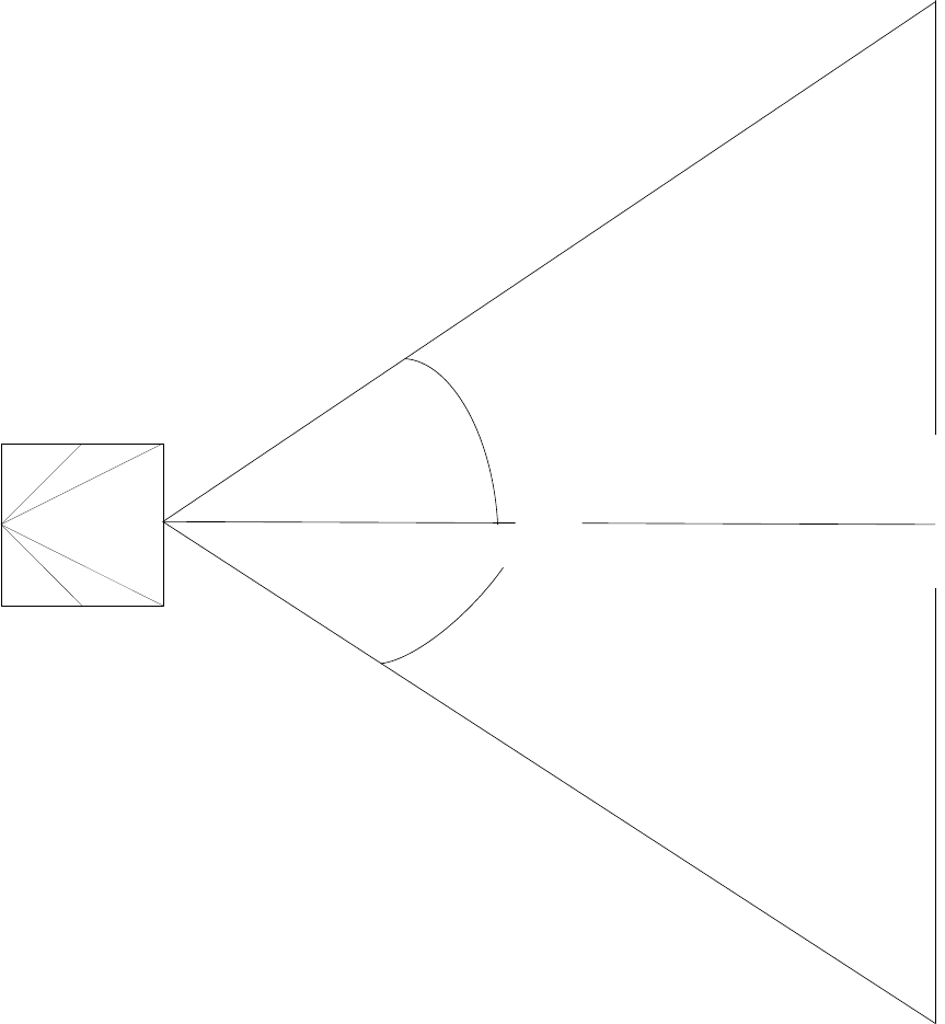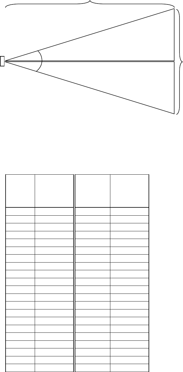 Width Of Radio Coverage =2 * Distance From Antenna * (tan 37.5˚) or 1.53 * Distance From Antenna