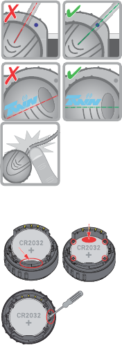 + pole of the button battery faces upwards the opening.