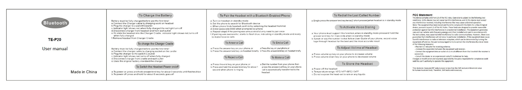 TESONIC TE-P20 BLUETOOTH EARPHONE User Manual
